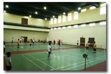 Three badminton courts to ensure that sporting activity continues even when you are indoors! Huge ceilings and its tall architectural structures ensure that it is well ventilated. A favourite past time for students and teachers alike! The badminton matches are the most anticipated!.