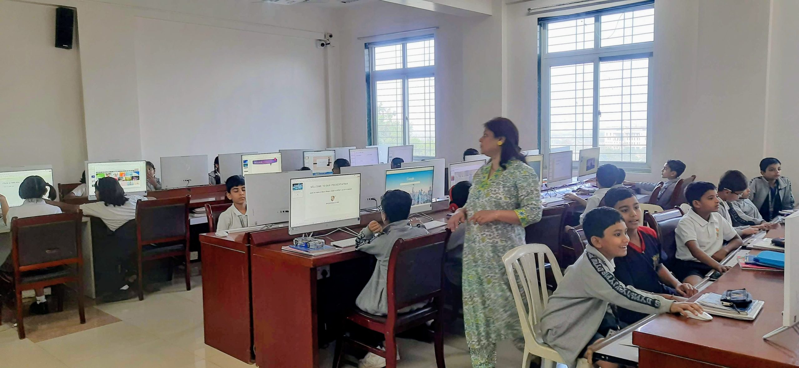 Echoing this ethos, modern day well- ventilated and well-lit classrooms with comfortable seating at DYPIS, Pune, make them a canvas for the students to fill up with their own learning abilities. To add to the ambience of the brightly decorated havens of self-expression, we have digital technology in the form of roof-mounted projectors with sound system to metamorphose the class into a live arena hence adding spice to the learning and teaching environment.